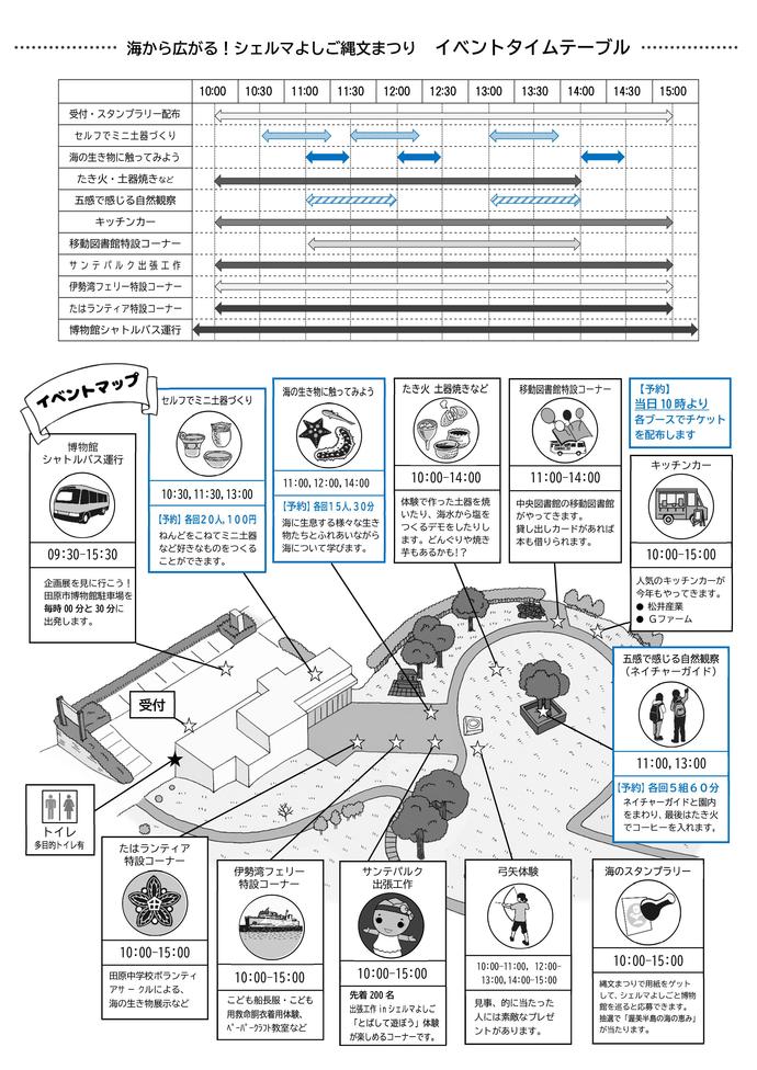 年に一度の人気イベント。今年は田原市博物館企画展「海から広がる渥美半島展」(10/8(土)〜)に合わせて10月に開催されます。縄文体験や自然観察、キッチンカー出店など楽しいイベントがたくさん!