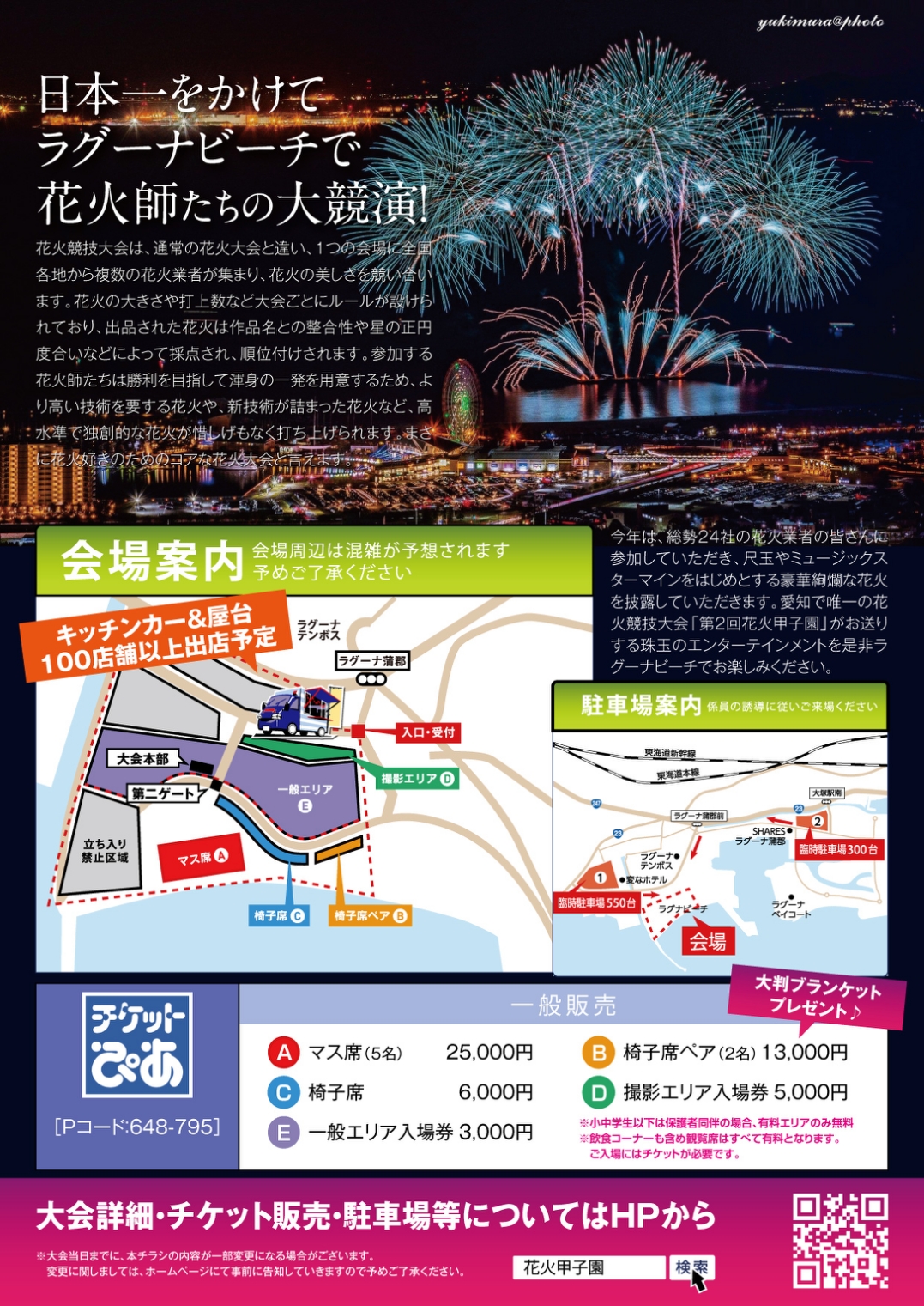 愛知県唯一の花火競技大会を一番良い場所でご覧いただけるよう、全席有料となっております。
