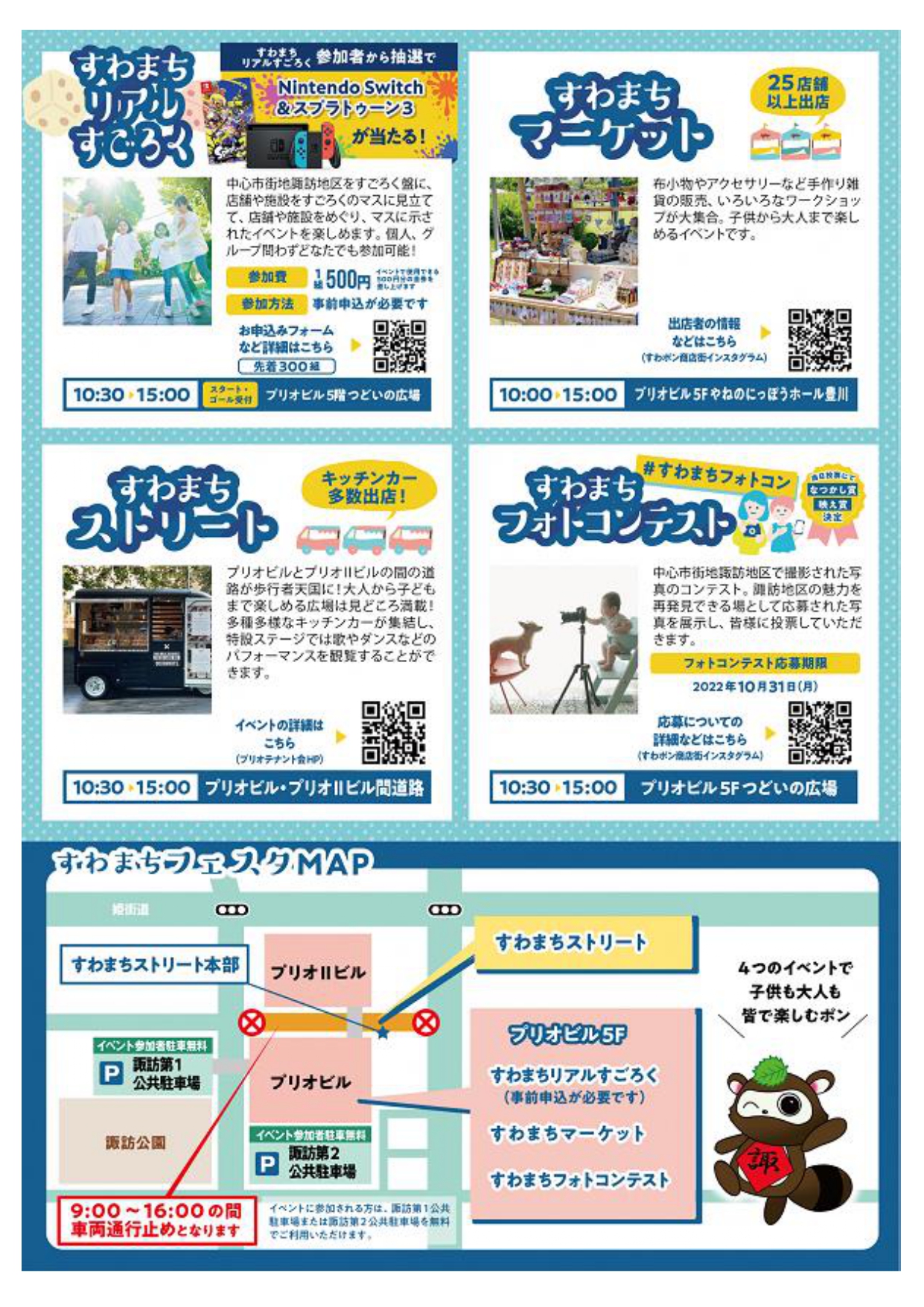 | 主催 | すわポン商店会・プリオテナント会・株式会社本宮 |