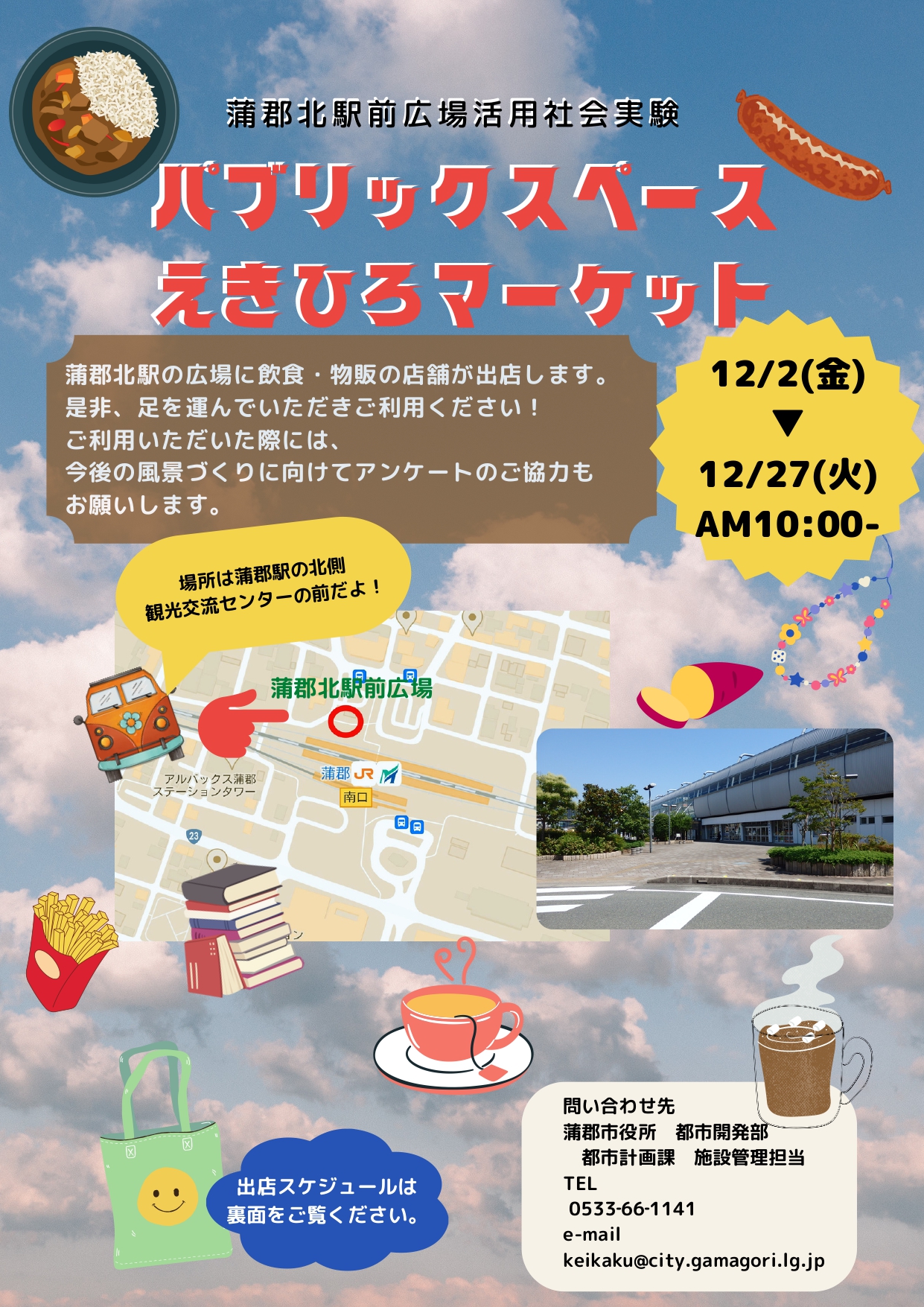 | 出店場所 | 蒲郡北駅前広場(蒲郡観光交流センター前) |
