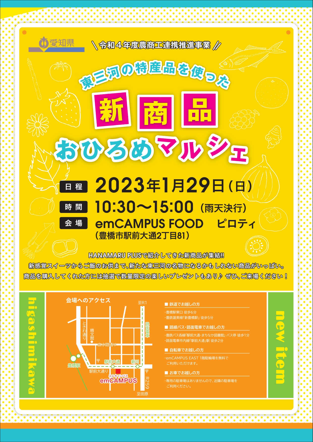 | 場所 | emCAMPUS FOOD ピロティ (豊橋市駅前大通2丁目81) |