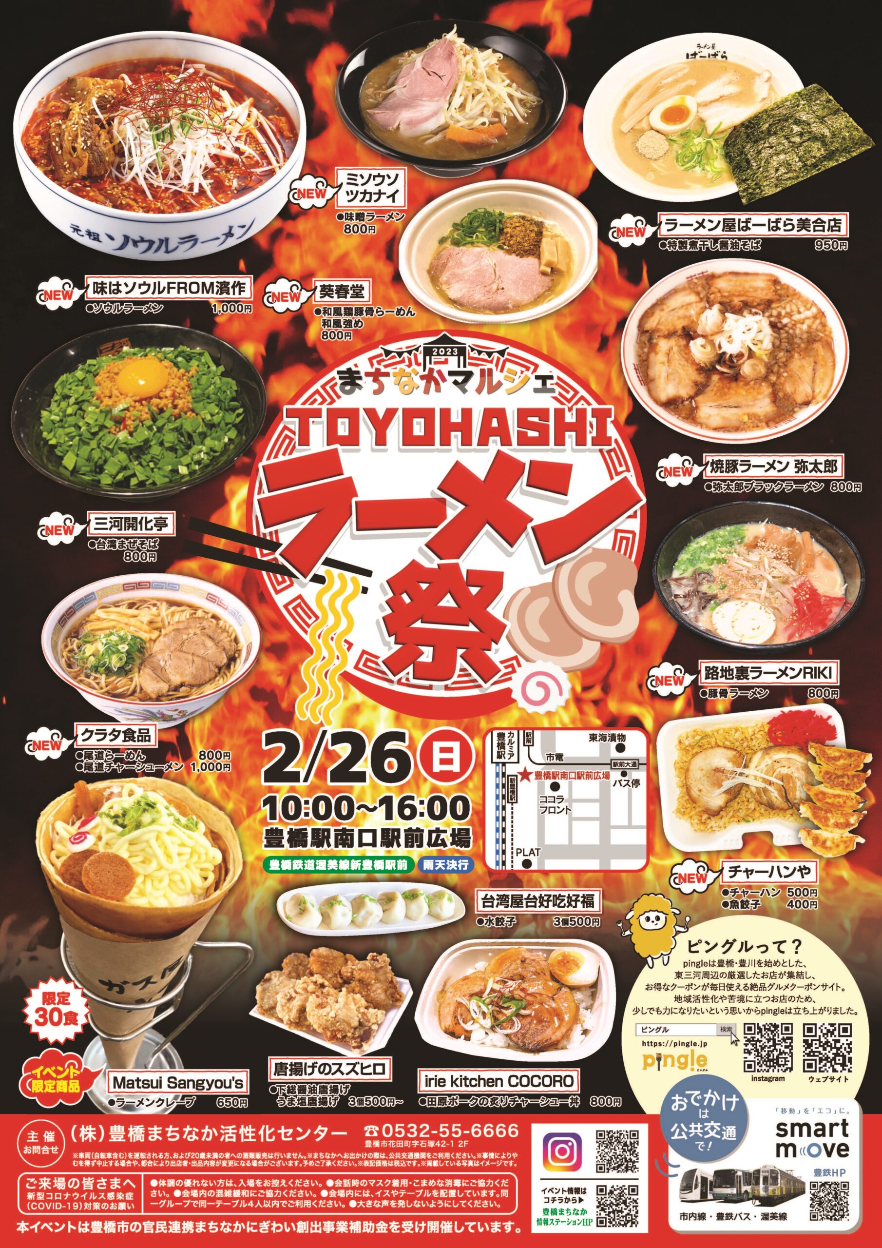 寒空の中、東三河のラーメン&グルメを一同に楽しめるまちなかマルシェを開催します。