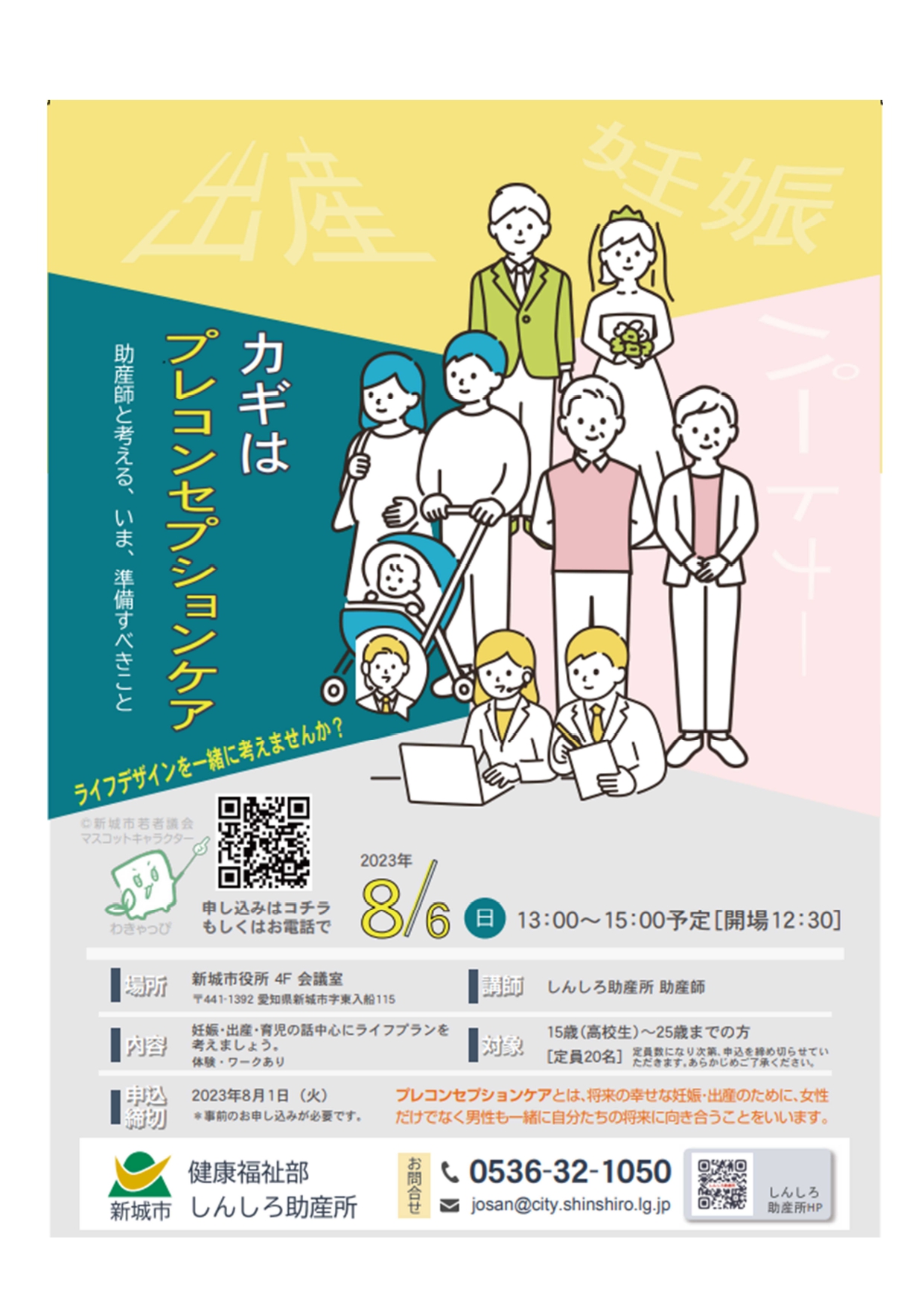 プレコンセプションケアとは、将来の幸せな妊娠・出産のために、女性だけでなく男性も一緒に自分たちの将来に向き合うことをいいます。男女の体の仕組み、妊娠・出産・育児についての正しい知識や将来への課題を学びながら、一緒にライフデザインを考えてみませんか。