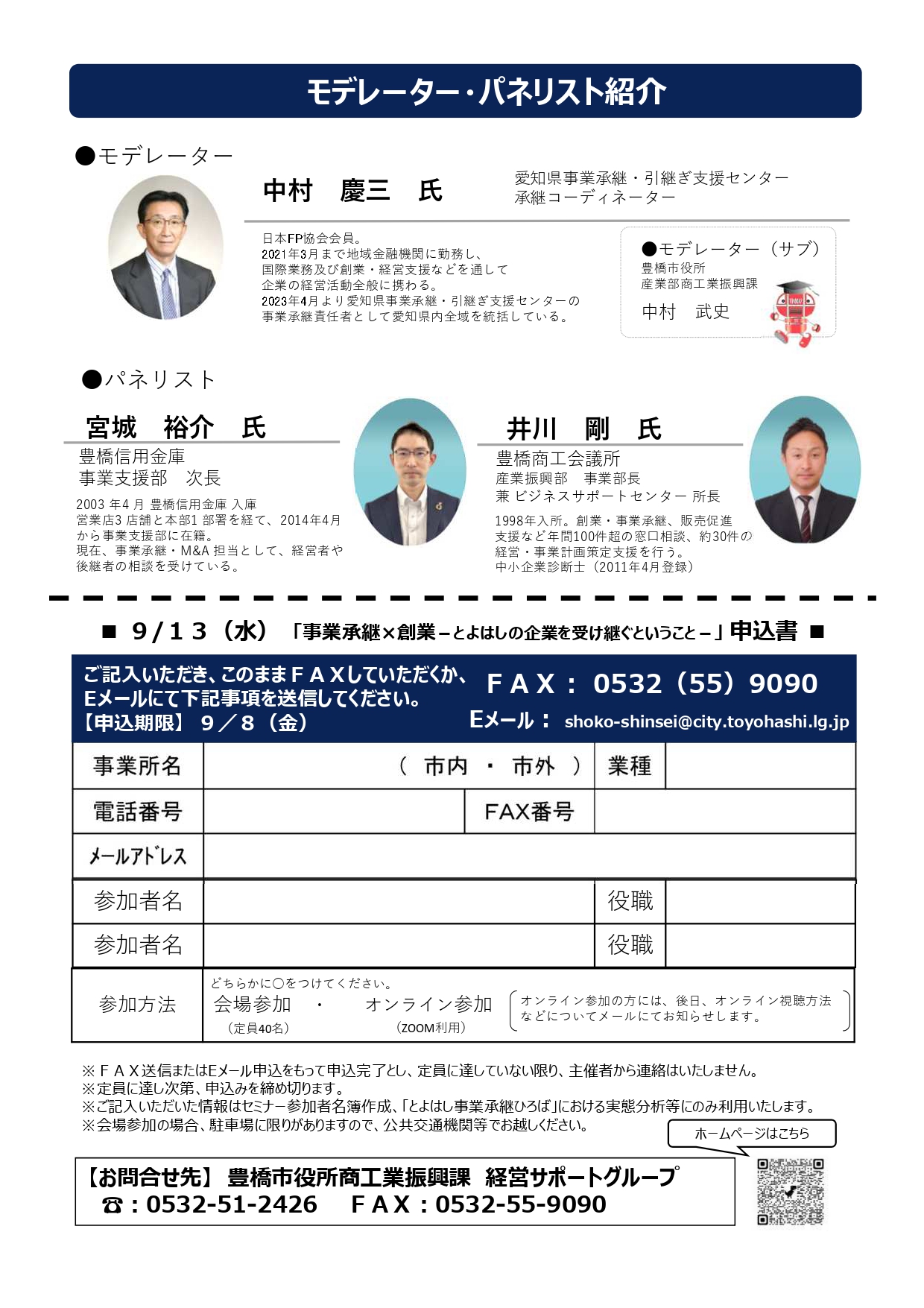事業承継セミナー「事業承継×創業-とよはしの企業を受け継ぐということ-」
