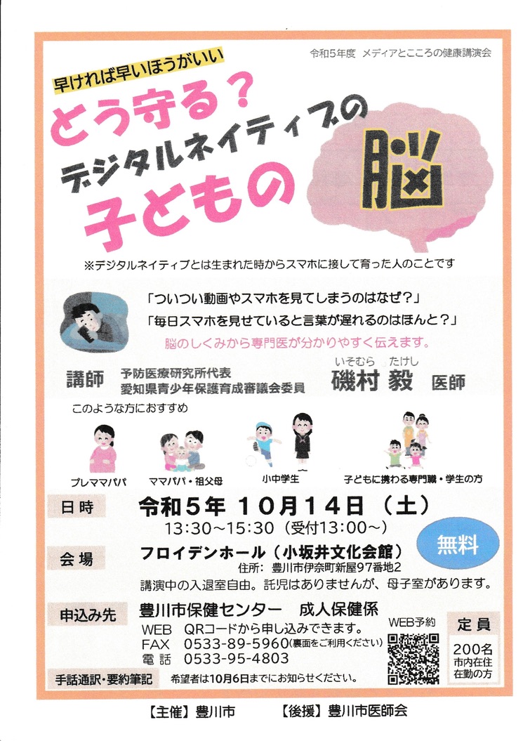 メディアとこころの健康講演会「どう守る? デジタルネイティブの子どもの脳」@小坂井文化会館