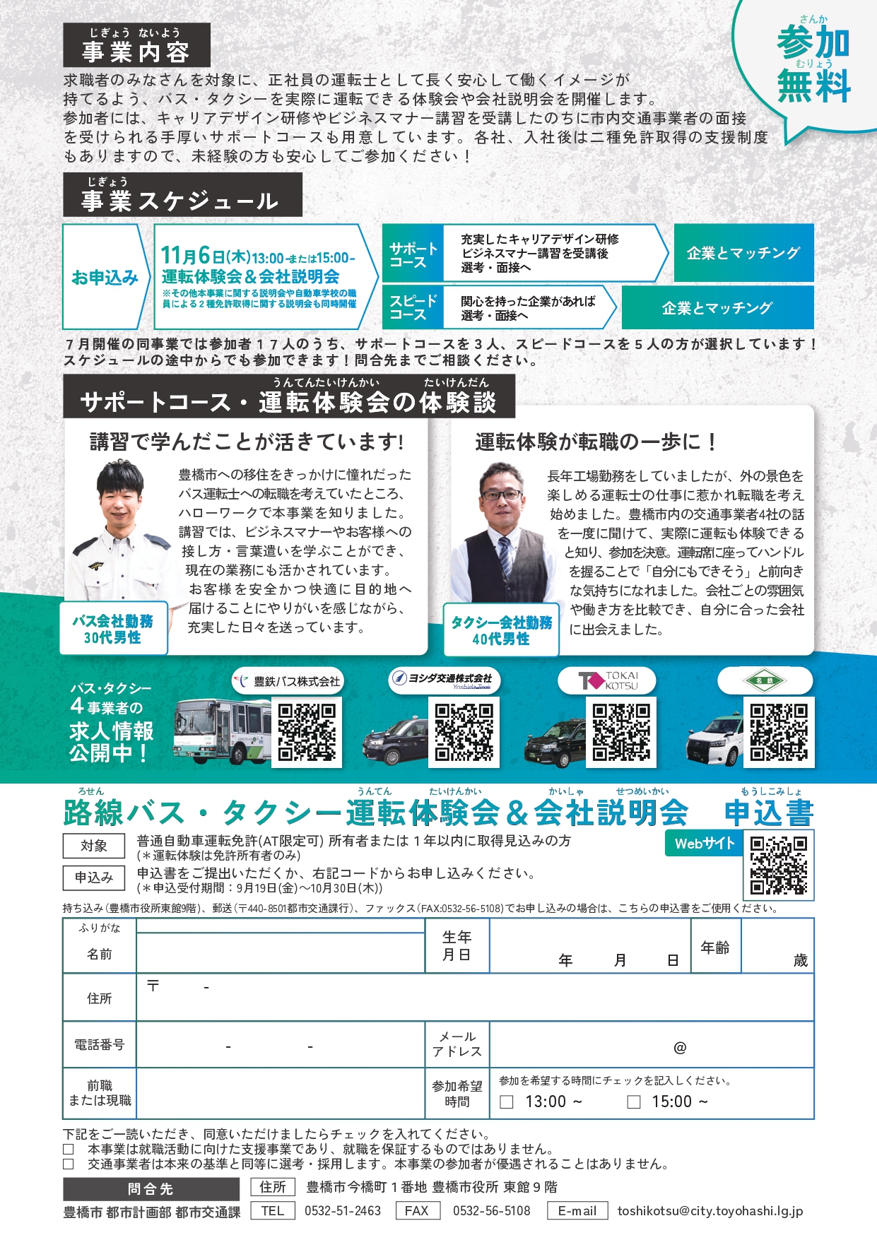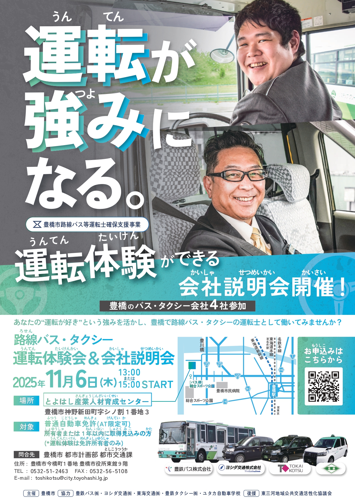 運転体験会&会社説明会お申し込み→豊橋市役所HP