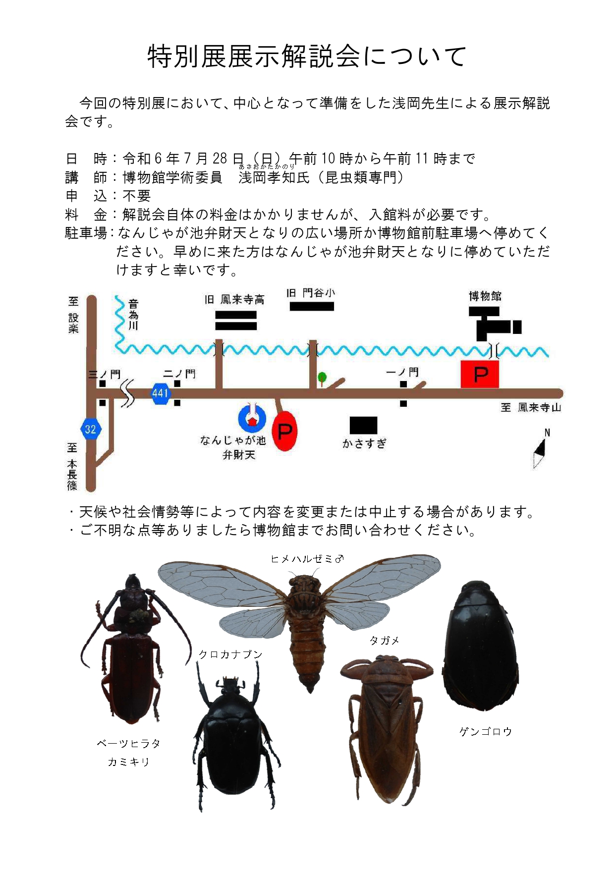 令和6年7月28日(日)10:00から11:00まで博物館学術委員による展示の解説会を行います。