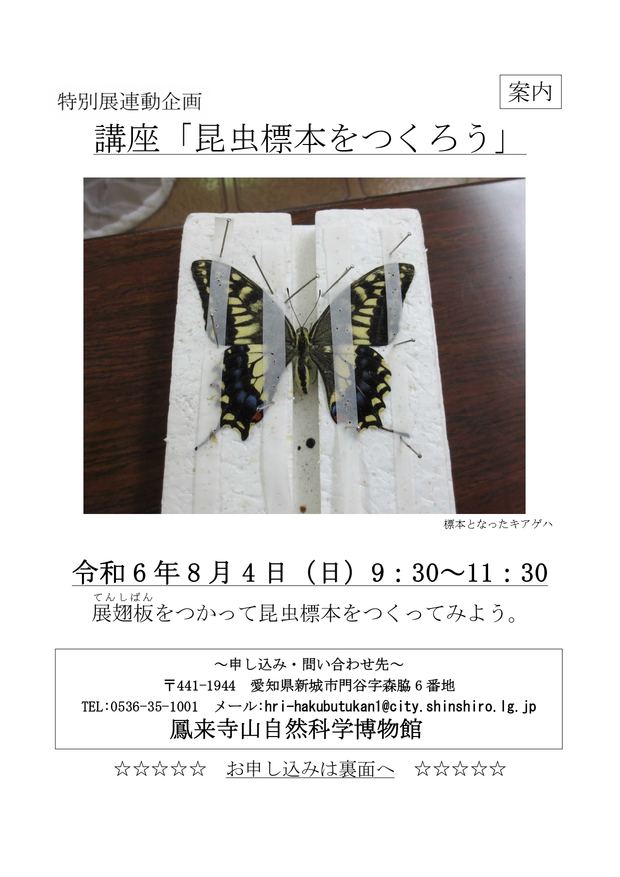 夏の特別展連動企画 講座「昆虫標本をつくろう」@鳳来寺山自然科学博物館