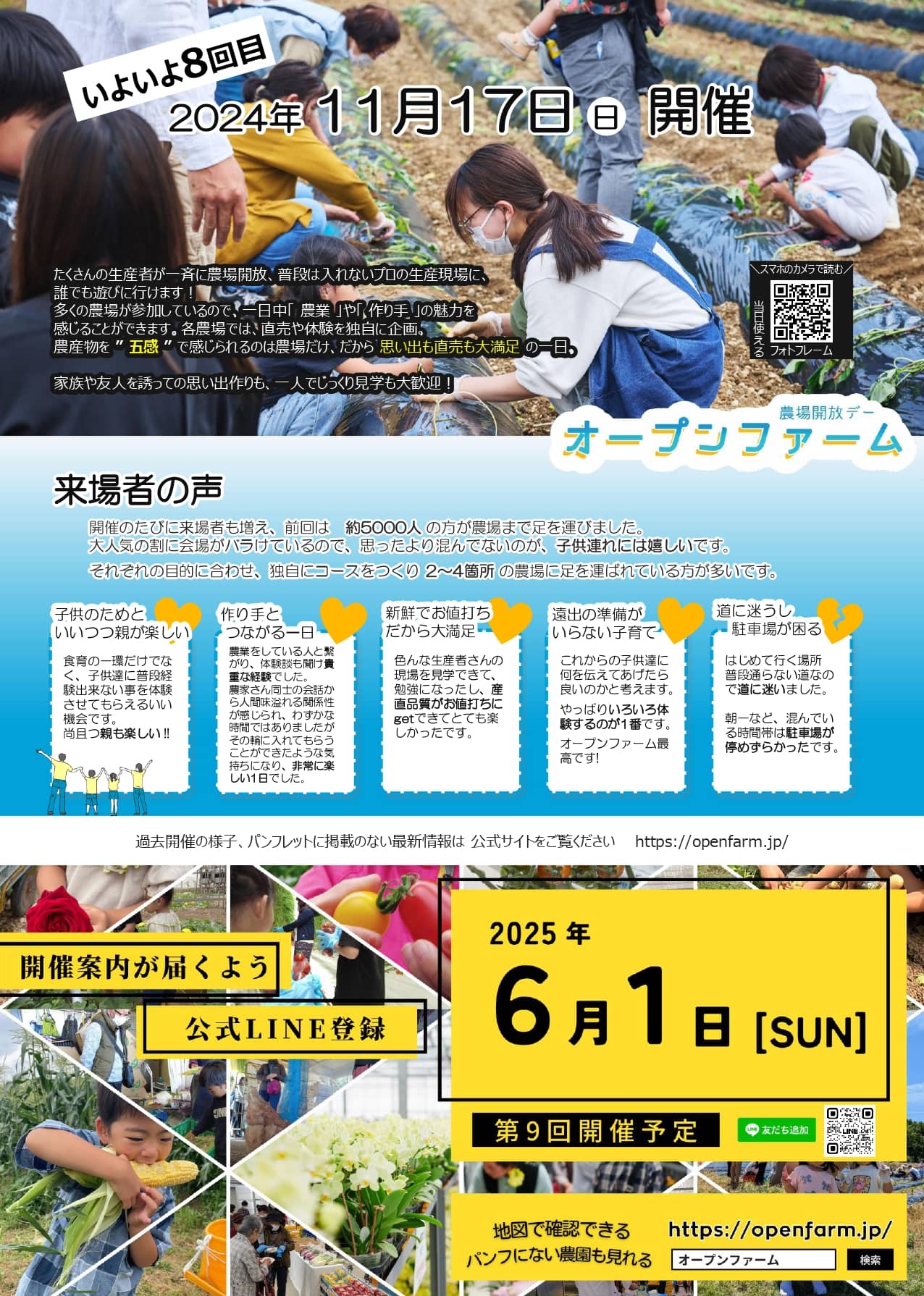 たくさんの生産者が一斉に農場開放、普段は入れないプロの生産現場に誰でも遊びに行けるイベントです。