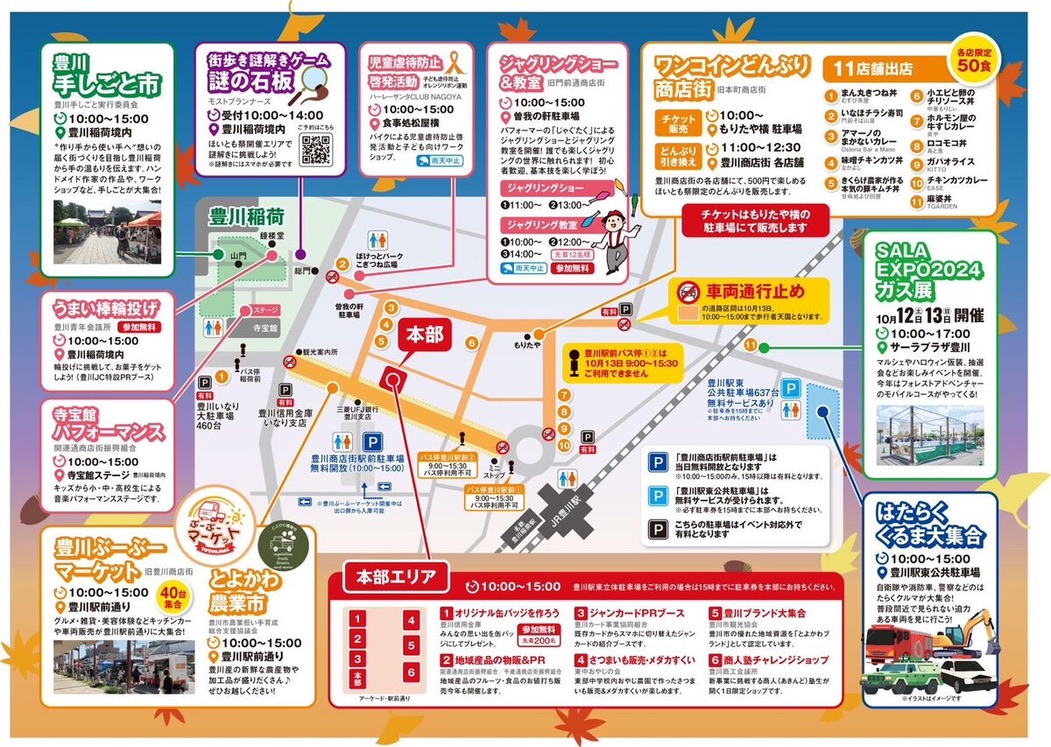 「豊川手しごと市」「豊川ぶーぶーマーケット」「街歩き謎解きゲーム」などいろいろなイベントが催されます。