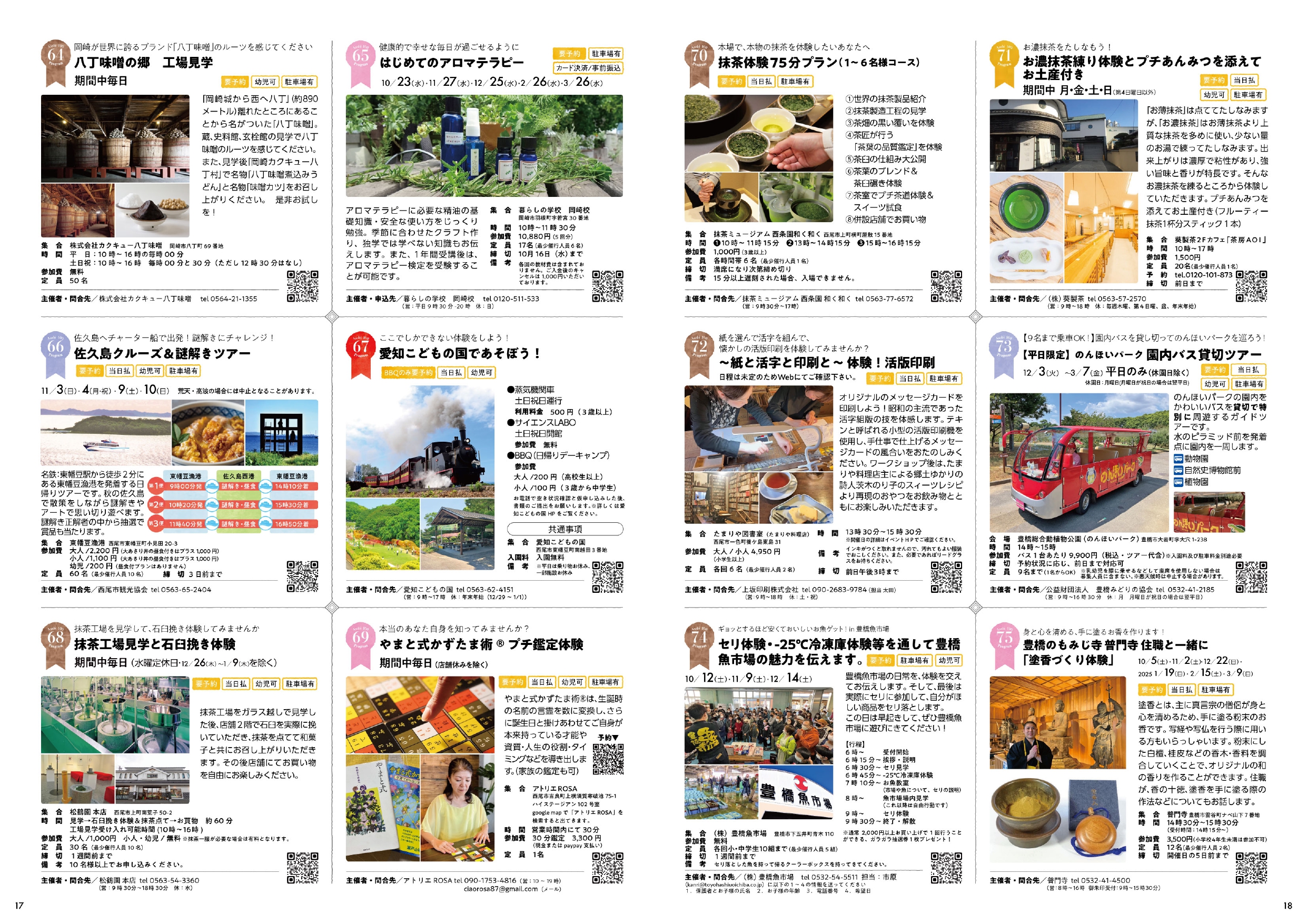 「三河らしい・三河ならでは」の自然、文化、歴史、そして暮らす人々の魅力を活かした遊びや体験が皆様をお待ちしております!
