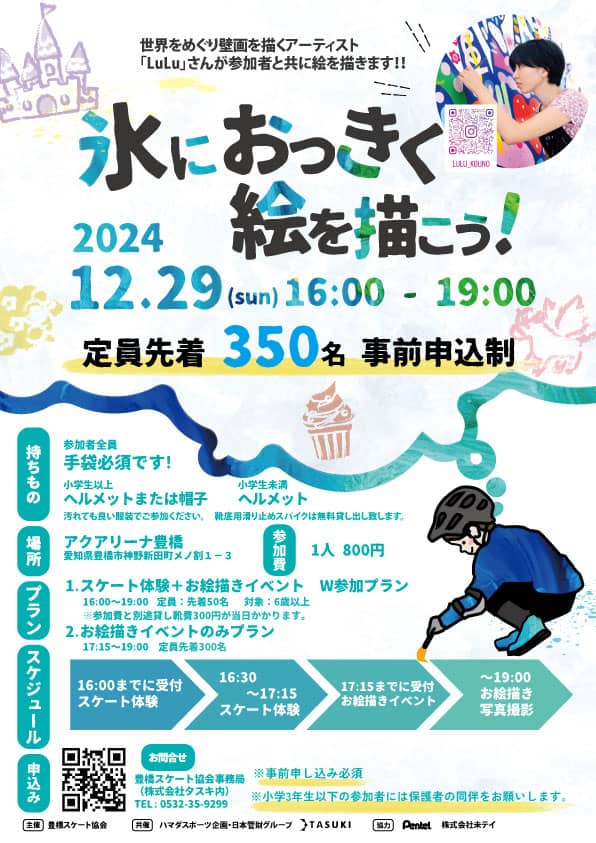 | 定員 | 先着350名(スケート体験+お絵描き50名、お絵描き300名) |
