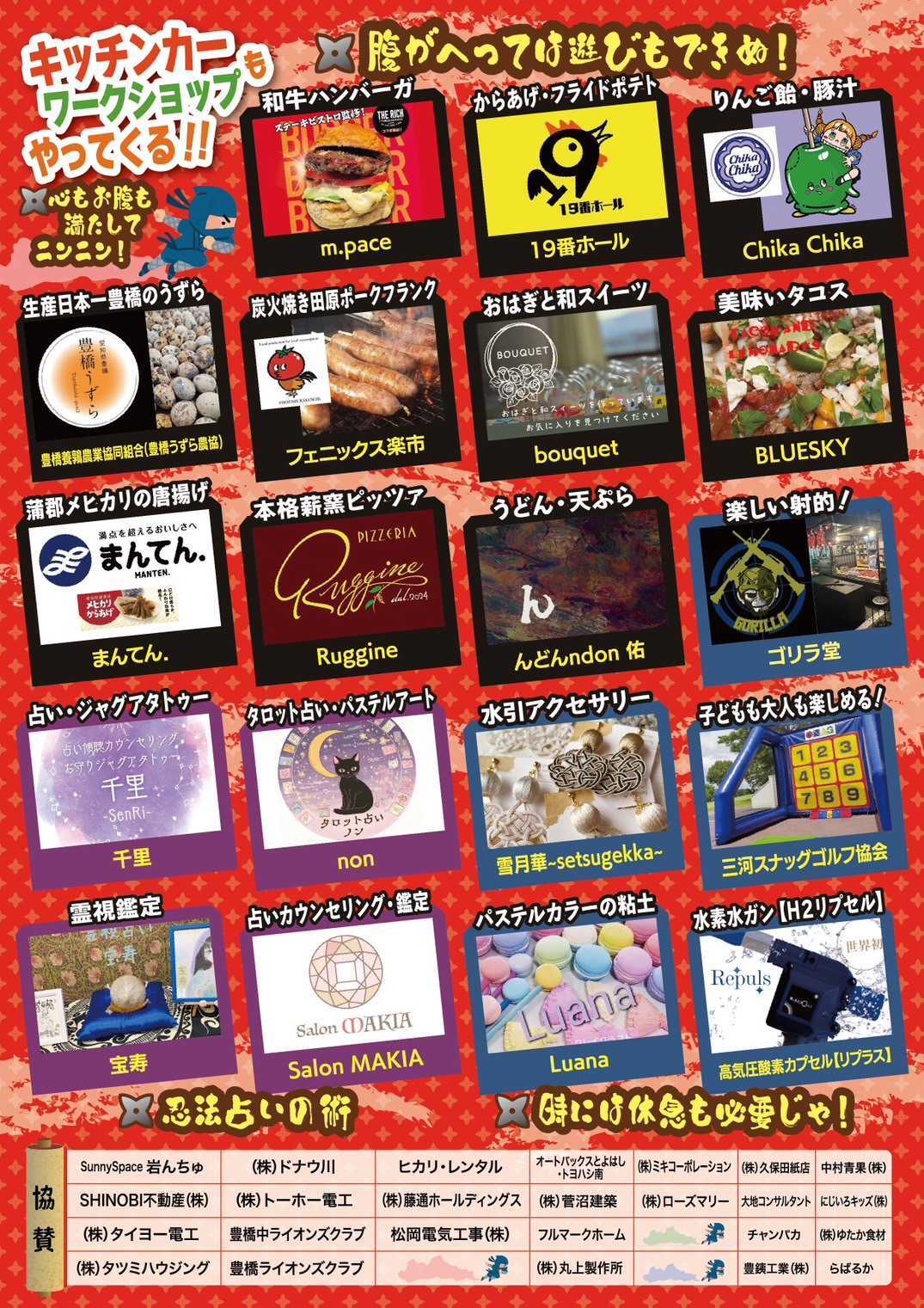 | お問い合わせ | 主催 (株)豊橋まちなか活性化センター 企画 にんじゃパーク実行委員会 mail:machinaka.ninjapark@gmail.com (重松) |