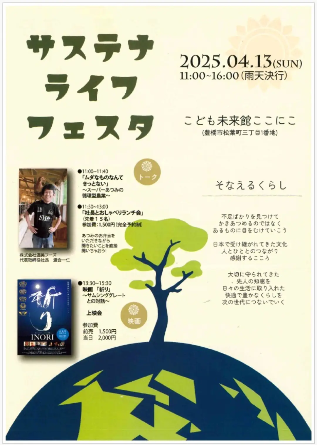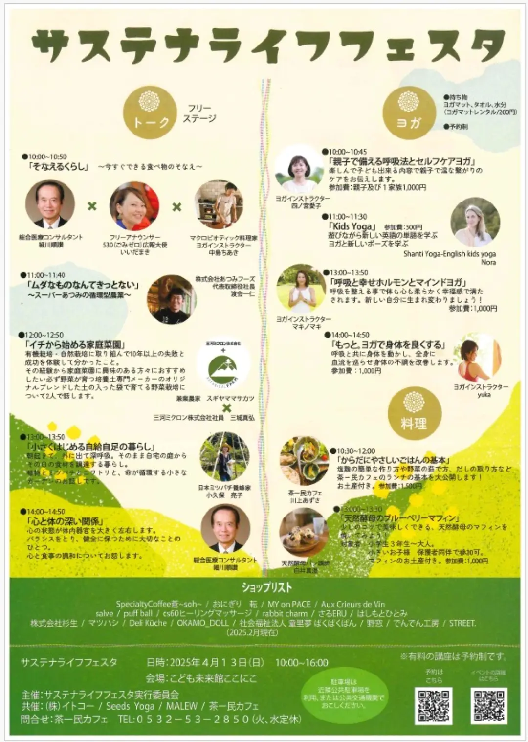 | お問い合わせ | サステナライフフェスタ実行委員会 TEL:0532-53-2850 MAIL:sustainalife2024@gmail.com |