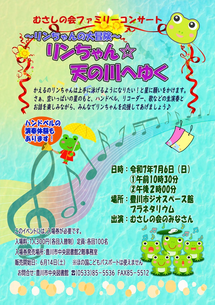 豊川市のジオスペース館プラネタリウムでは、ファミリーコンサートを2025年7月6日(日)に開催します。