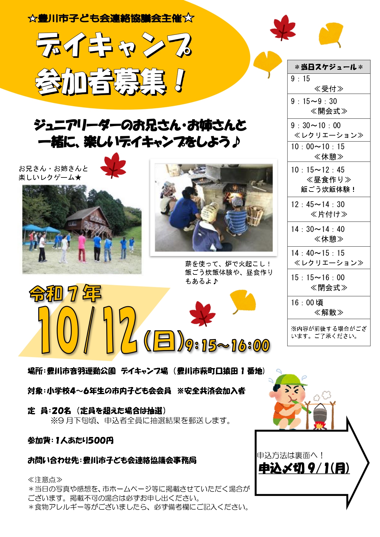 申込フォーム:デイキャンプ参加申込フォーム(外部リンク)