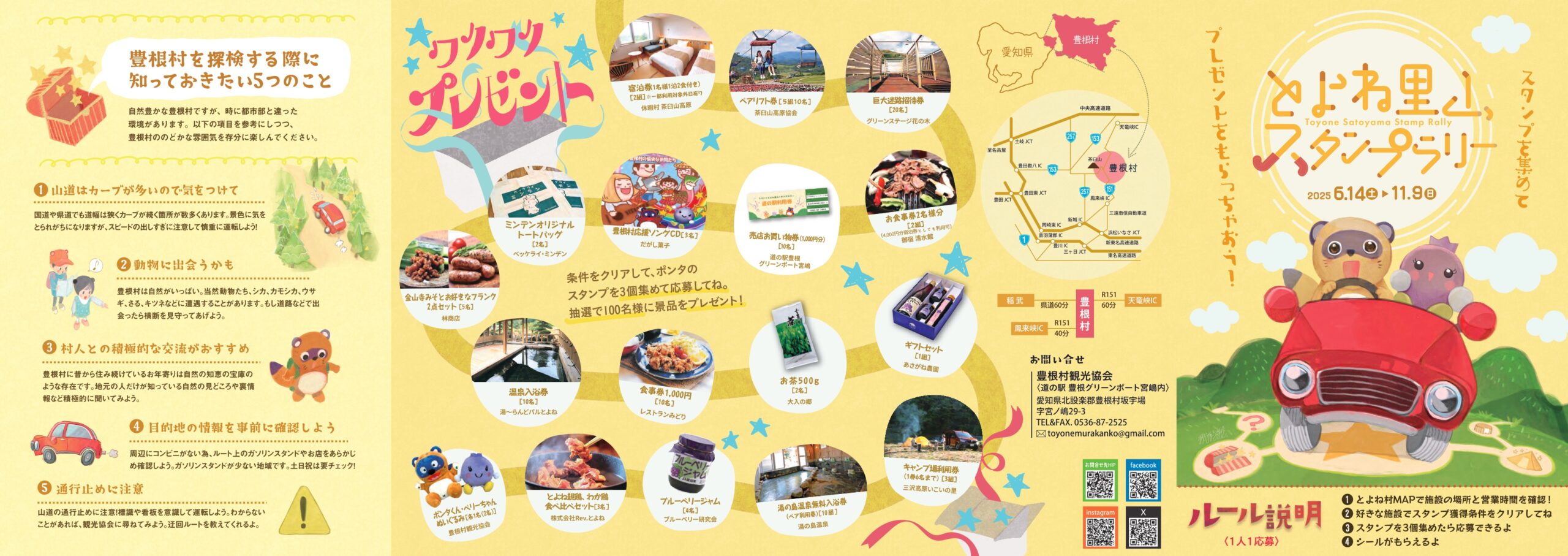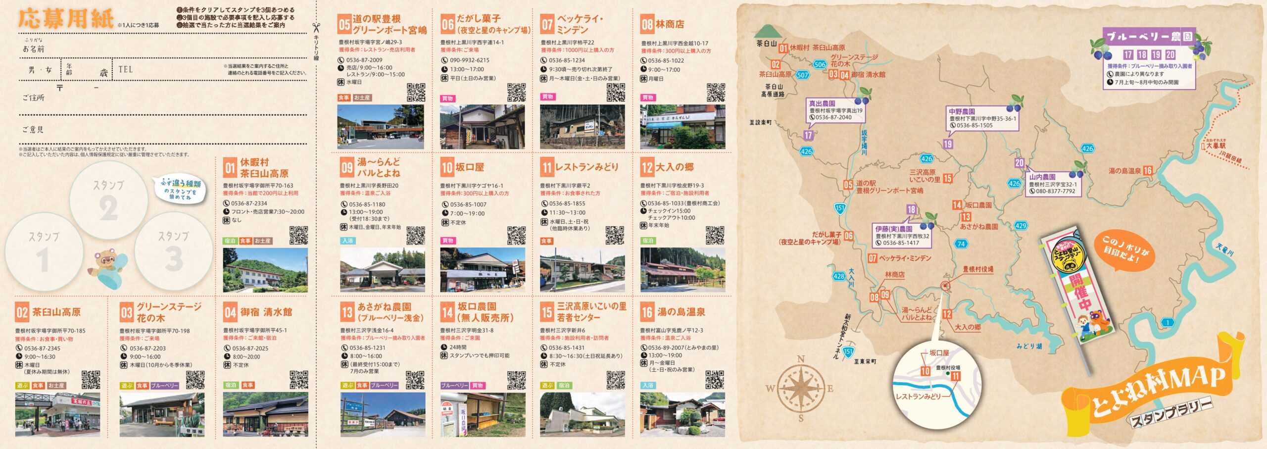 豊根村内の行楽施設20カ所に設置されたポンタのスタンプを3種類集めて素敵なプレゼントを当てよう!