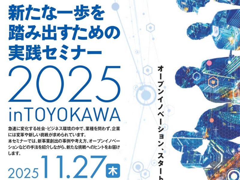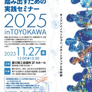 豊川市では市内事業者等を対象に、新事業創出に向けて必要な知識やオープンイノベーション、スタートアップとの連携による共創の重要性について理解を深めていただくためのセミナー及びワークショップを開催します。