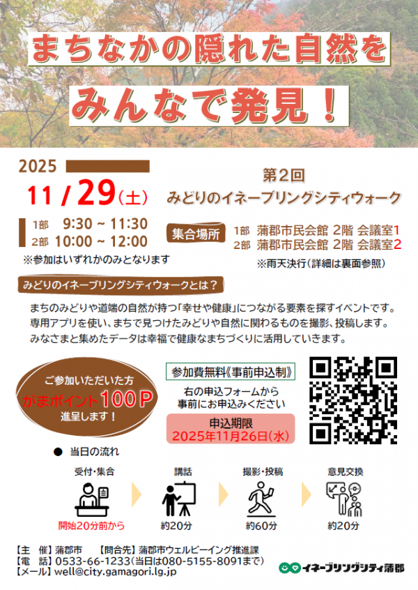 蒲郡市民会館を発着に「第2回みどりのイネーブリングシティウォーク」を開催します!