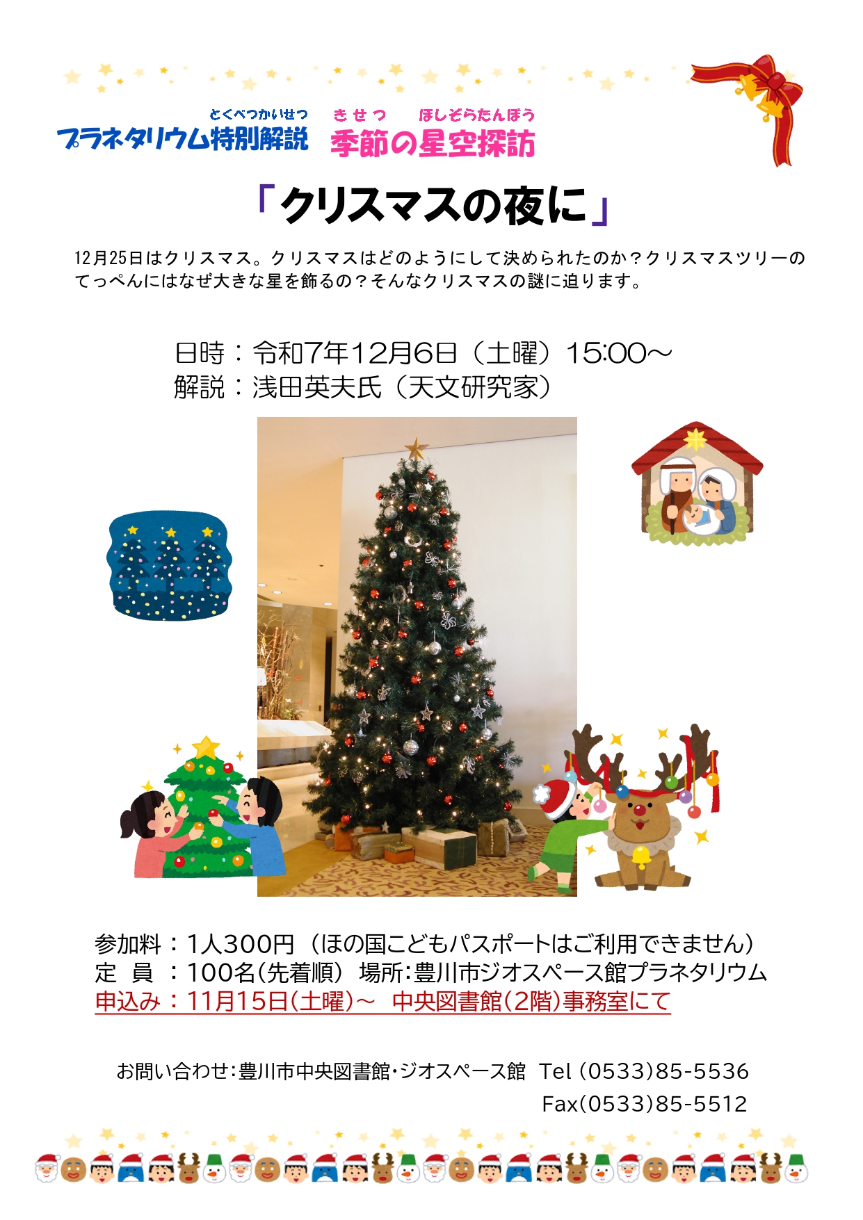 | 場所 | ジオスペース館プラネタリウム(中央図書館2階) (豊川市諏訪1丁目63) |
