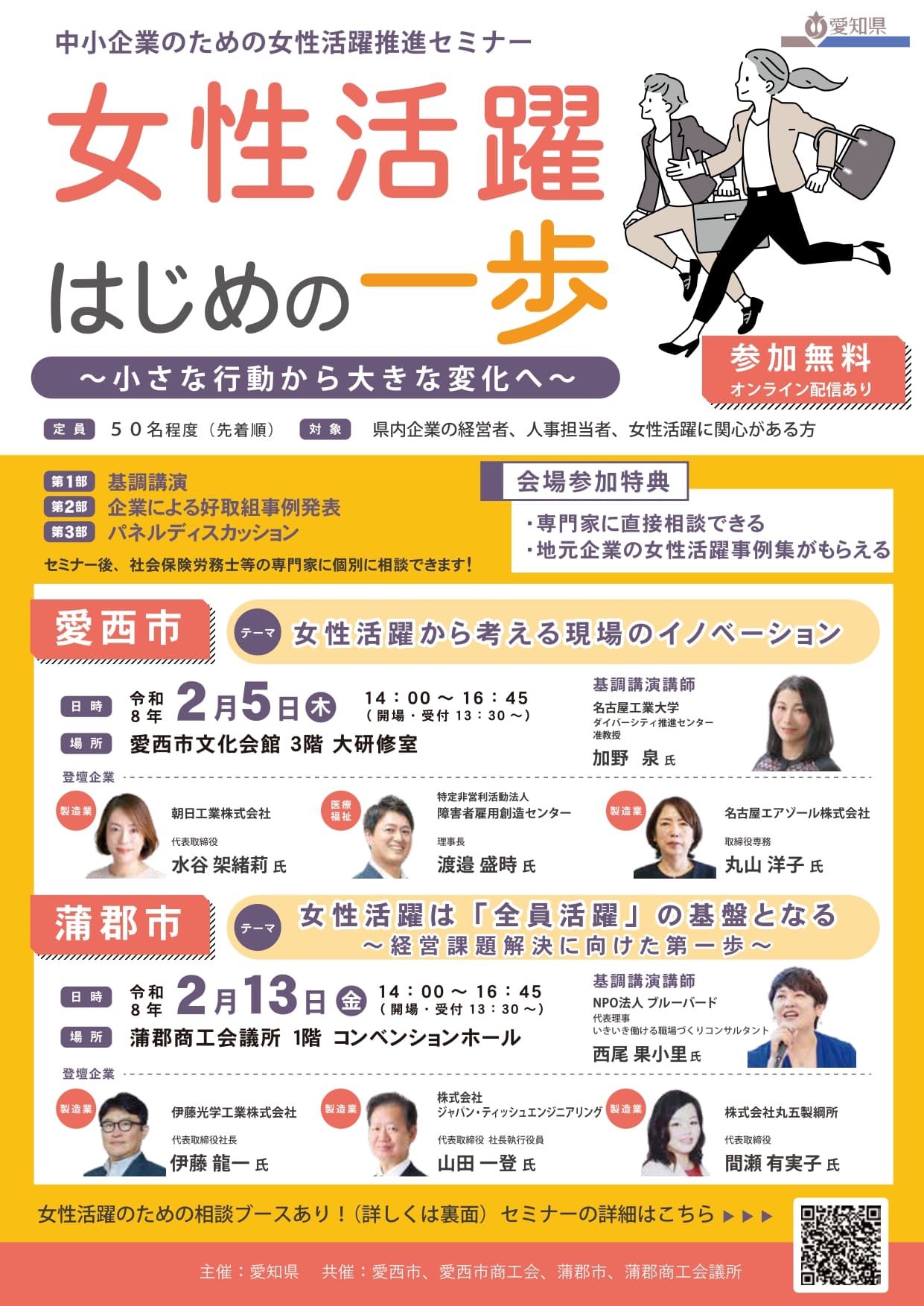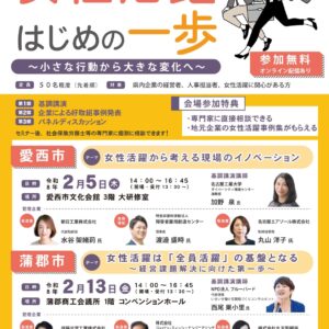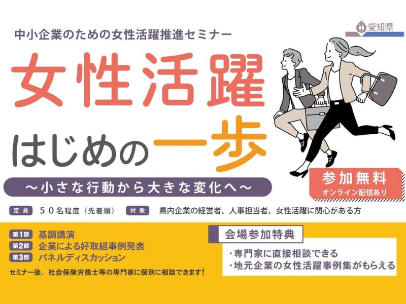 女性活躍に取り組み始めた方や、人材確保・業績アップにつながる一手を模索中の方々等、皆様の積極的なご参加をお待ちしております。