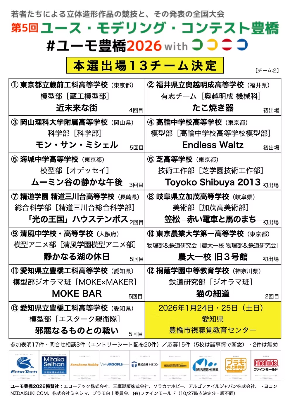 | 詳細 | ユース・モデリング・コンテスト豊橋HP ※本ページは2026.1.7時点の情報になります。 |