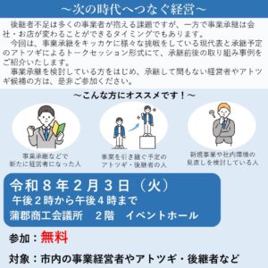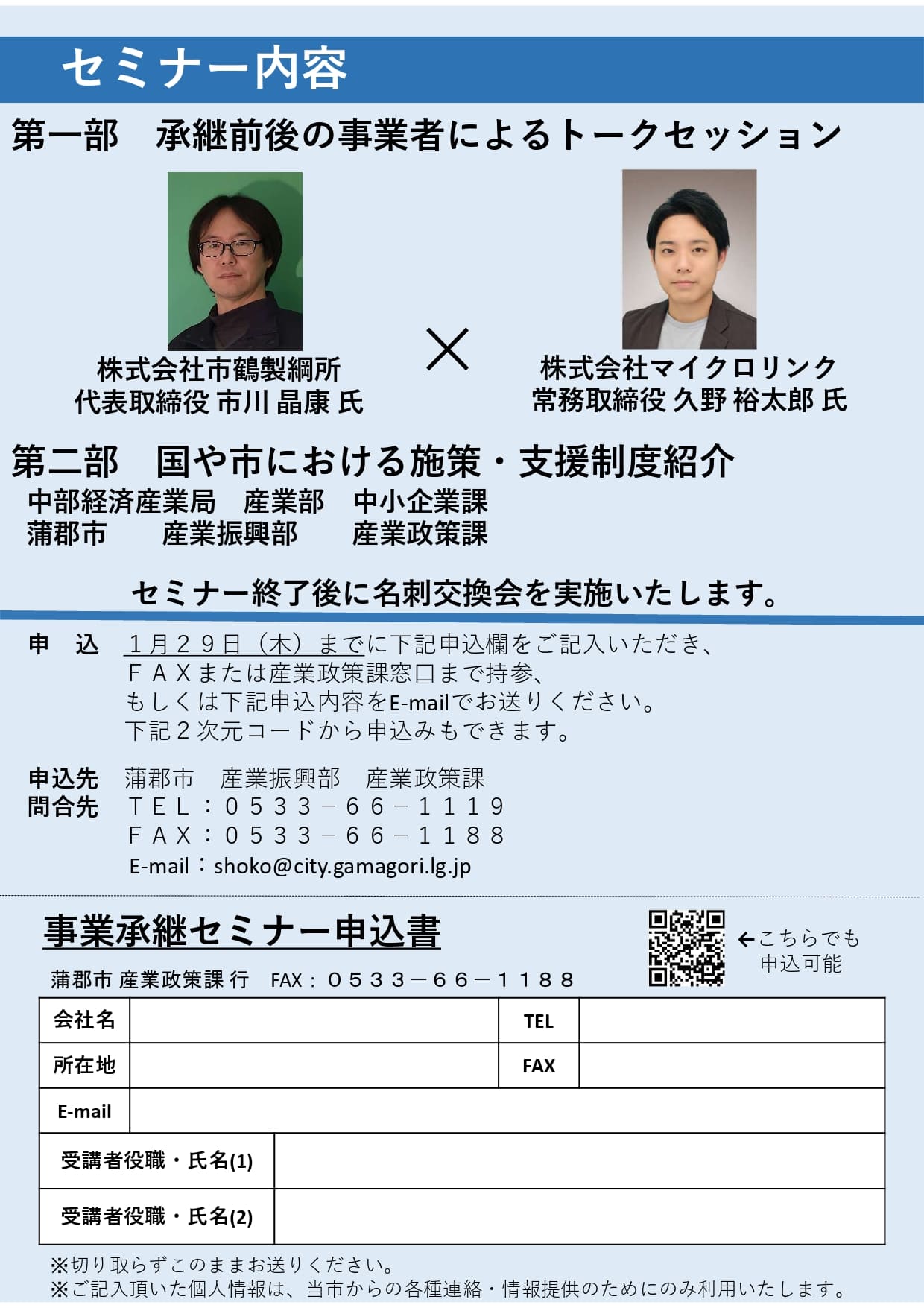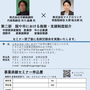 | 主催 | がまごおり事業承継ネットワーク「かけはし」 事務局:蒲郡市産業政策課 |