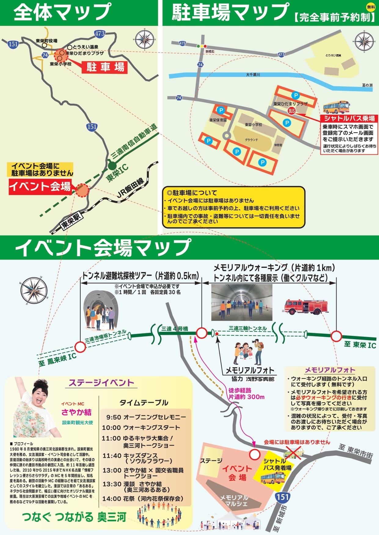 ステージイベントやマルシェ、開通前の道路での今しか体験できないウォーキング、知られざる秘密を国土交通省職員が紹介するトンネル避難坑探検ツアーも開催!