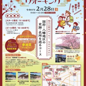 また、西古瀬川沿いの八幡桜や自然を感じる赤塚山公園(梅が見ごろ)を巡るコースとなっており、春の訪れを体感していただけます。