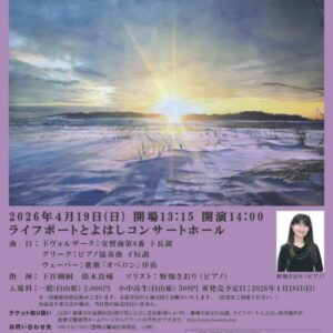 野畑さおり先生をお迎えして、グリーグのピアノ協奏曲を下谷剛嗣の指揮で。