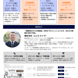 ※Day1後およびDay2後にオンラインまたは対面での個別メンタリング(60分/回)を実施します。