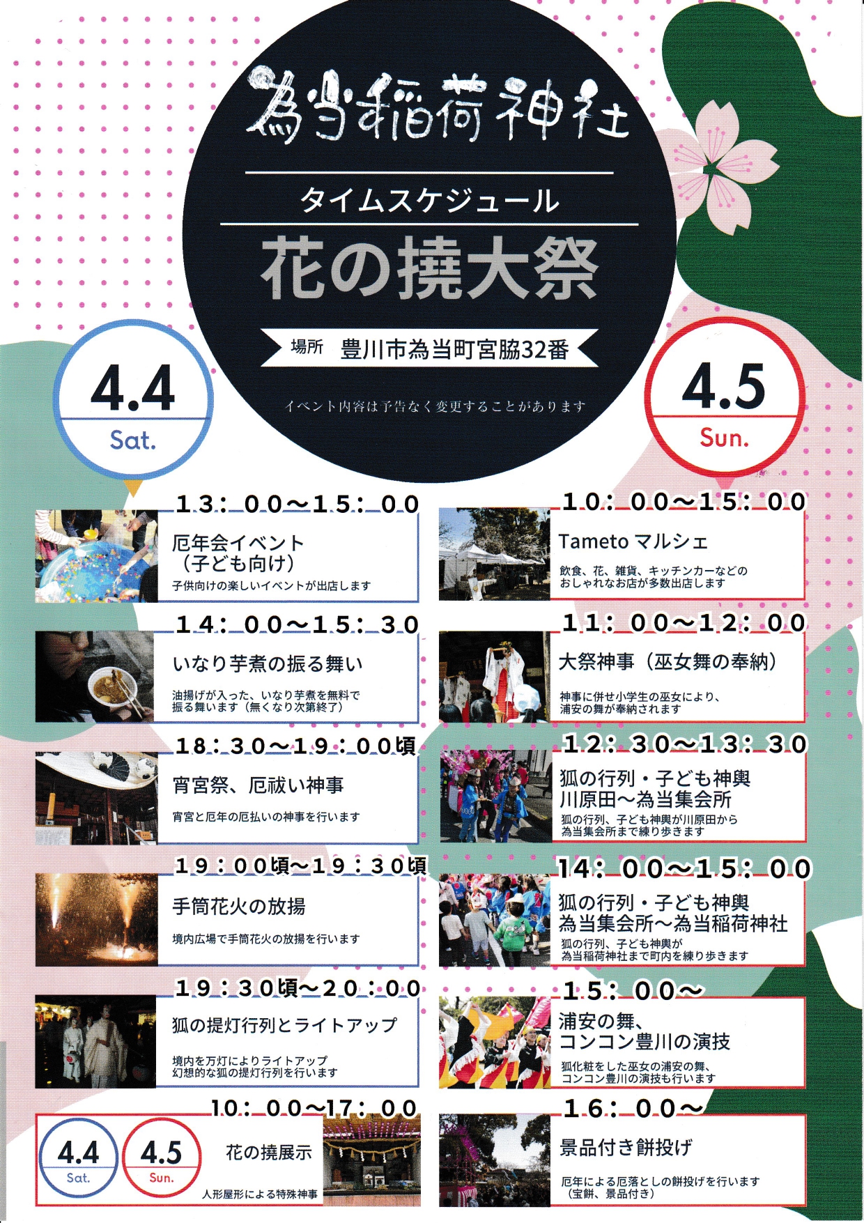 2026年4月4日(土)・5日(日)為当稲荷神社にて、花の撓大祭が行われます。