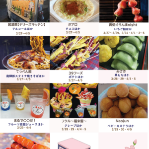 3月27日(金)から4月5日(日)の11:00〜20:30分までさまざまなキッチンカーが出店します。