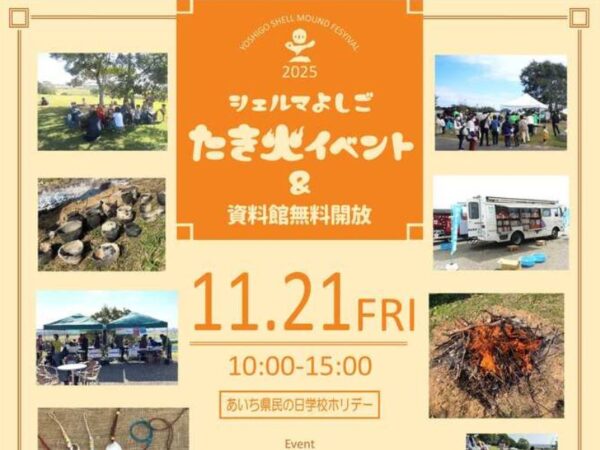 11月21日は「あいち県民の日学校ホリデー」! たき火(土器焼きなど)、縄文ガチャ、縄文ファッション体験コーナー、セルフ貝のアクセサリーづくり、伊勢湾フェリー特設コーナー、サンテパルクたはら特設コーナー、移動図書館、キッ…