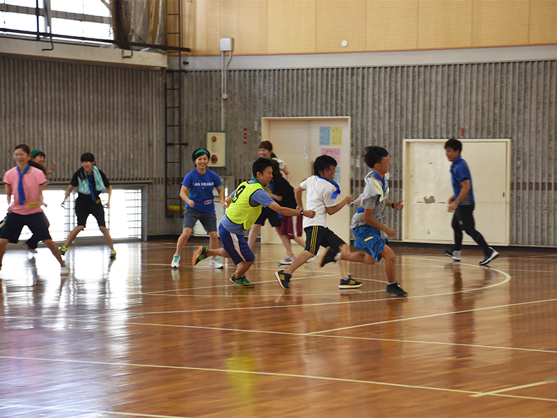 しっかりと準備運動をしたところで、「どんどん鬼ごっこ」がスタート!!